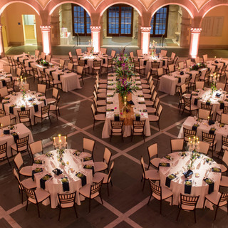 Ashlee and Dana are a bright, stylish, determined, hard-working yet fun, and playful couple who's love story began many years ago when they met on the campus of NSU in 2005. The two became close within weeks before graduation but explored different paths. These two were meant to be and it was a tremendous delight designing and creating floral & decor elements for this couple. We worked with Ashlee and Dana over the course of several months planning the look of their incredible wedding day experience. Ashlee and Dana exchanged vows under the stunning atmosphere and breathtaking backdrop of the magnificent architecture and in front of the dramatic staircase at the Chrysler Museum of Art in Norfolk. An awe-inspiring ceremony design will be created with chairs arranged in a slight curved rows with a unique and exquisite custom-made floating fresh floral alter was designed to create a clean, luscious, modern, Grecian feel.